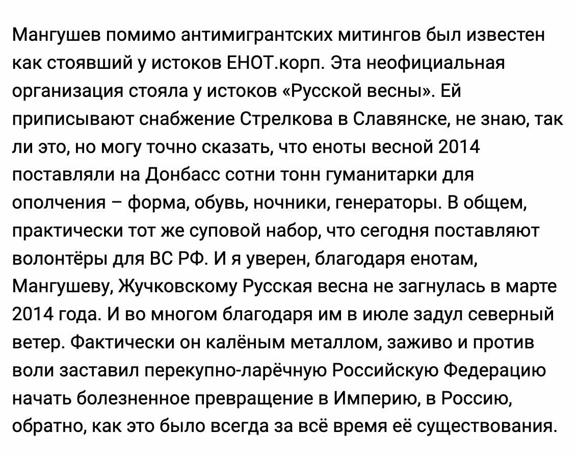 So, let me reiterate. The whole separatism would have ended before it even started if not a Moscow-born Muscovite Mangushev who delivered crucial supplies to a Moscow-born Muscovite Girkin. What kind of separatism is that?